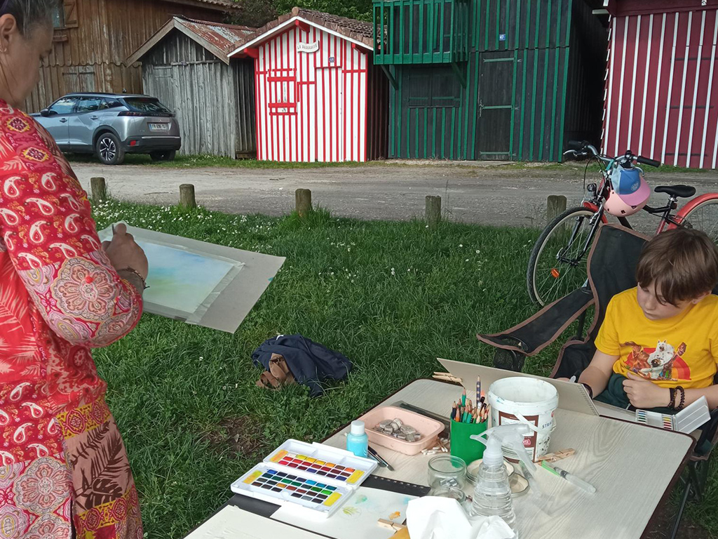 Avec une vue sur les cabanes, les bateaux et la nature environnante, découvrez la composition et réaliser votre dessin selon votre point de vue et explorer les techniques d’aquarelle (sec et mouillé). Vous pourrez personnaliser votre œuvre avec des pastels, stylos noirs ou crayons aquarellables. Chaque participant repart avec sa création !