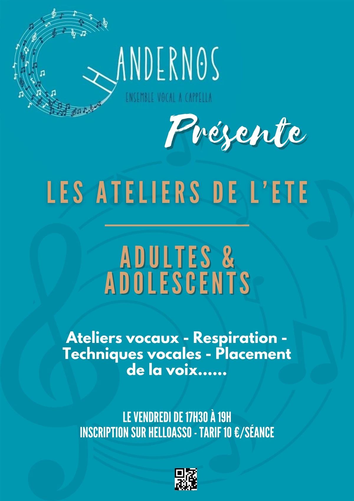 Chandernos propose des ateliers vocaux afin de travailler la respiration, des techniques vocales, le placement de la voix.