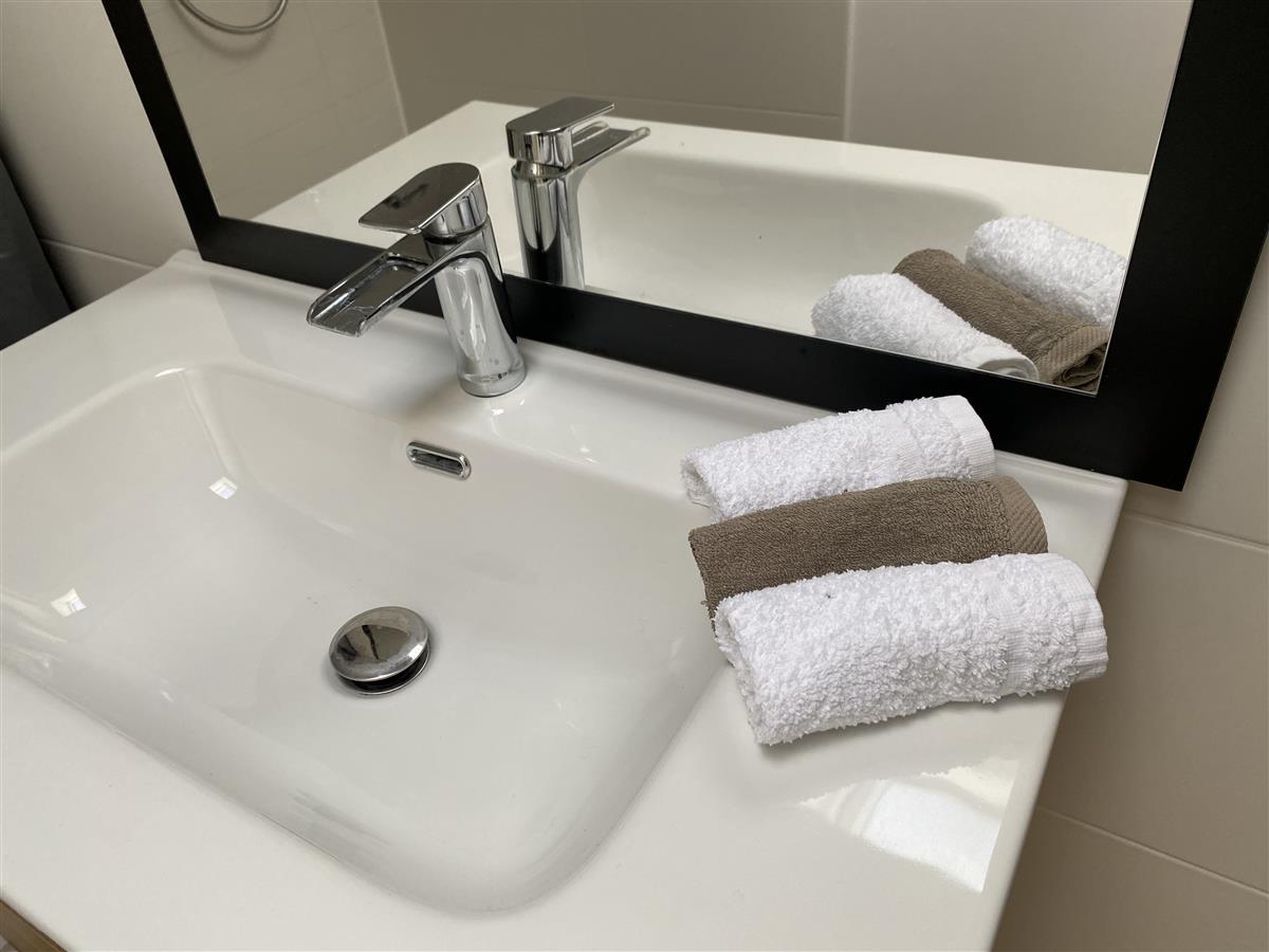 Das Badezimmer mit WC ist den Bewohnern dieser beiden Zimmer vorbehalten.