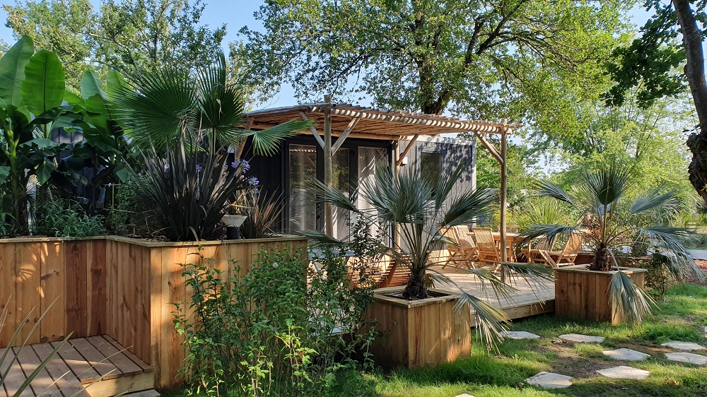 This is where Bénédicte and Alexandre have set up their campsite, limiting the number of pitches to 73 in order to offer comfort and privacy to vacationers. Several options are available: tent and caravan pitches, mobile homes, wooden chalets, and cabins on stilts for adventurers.