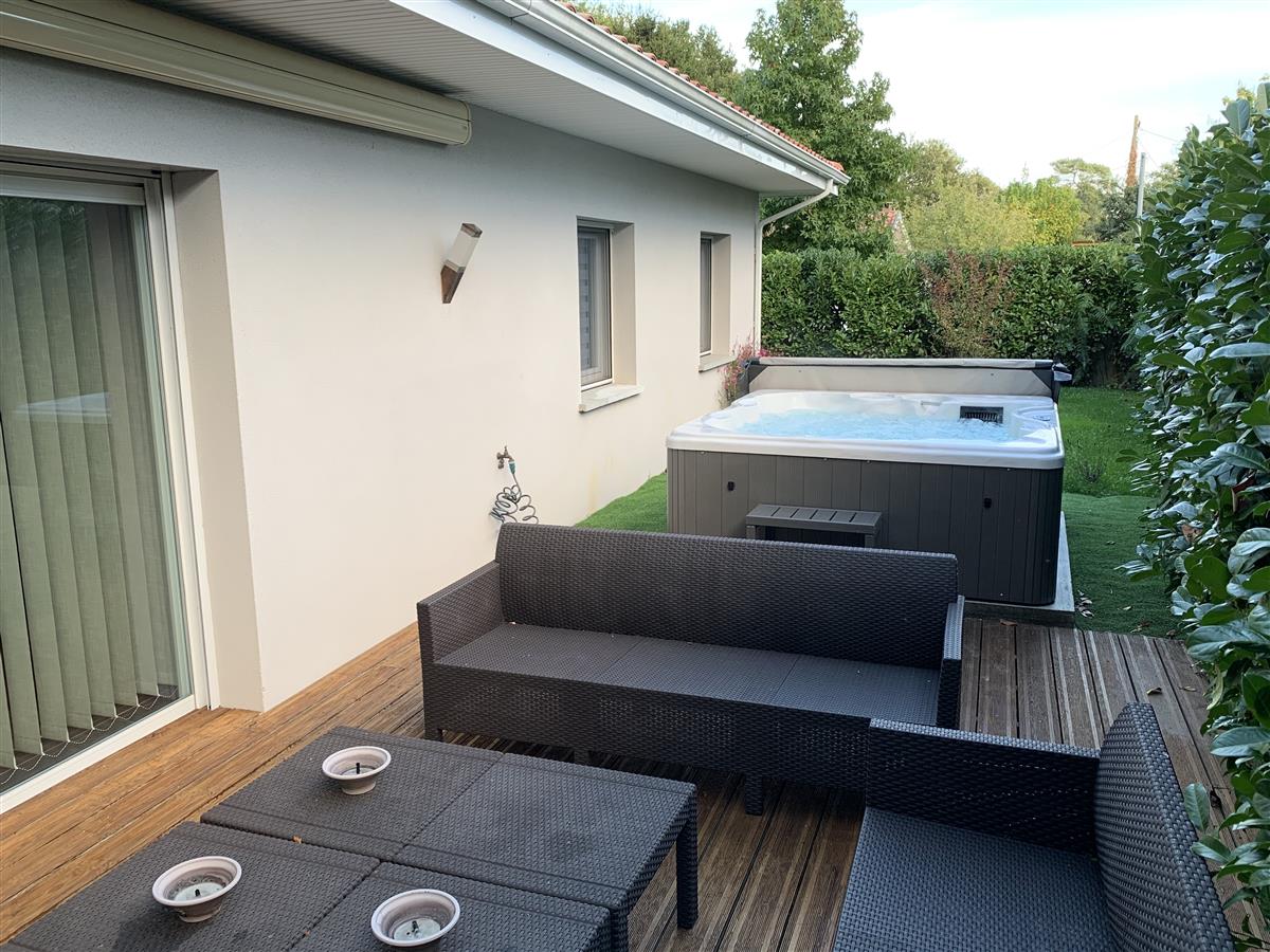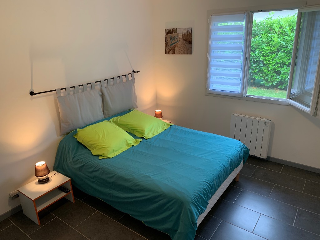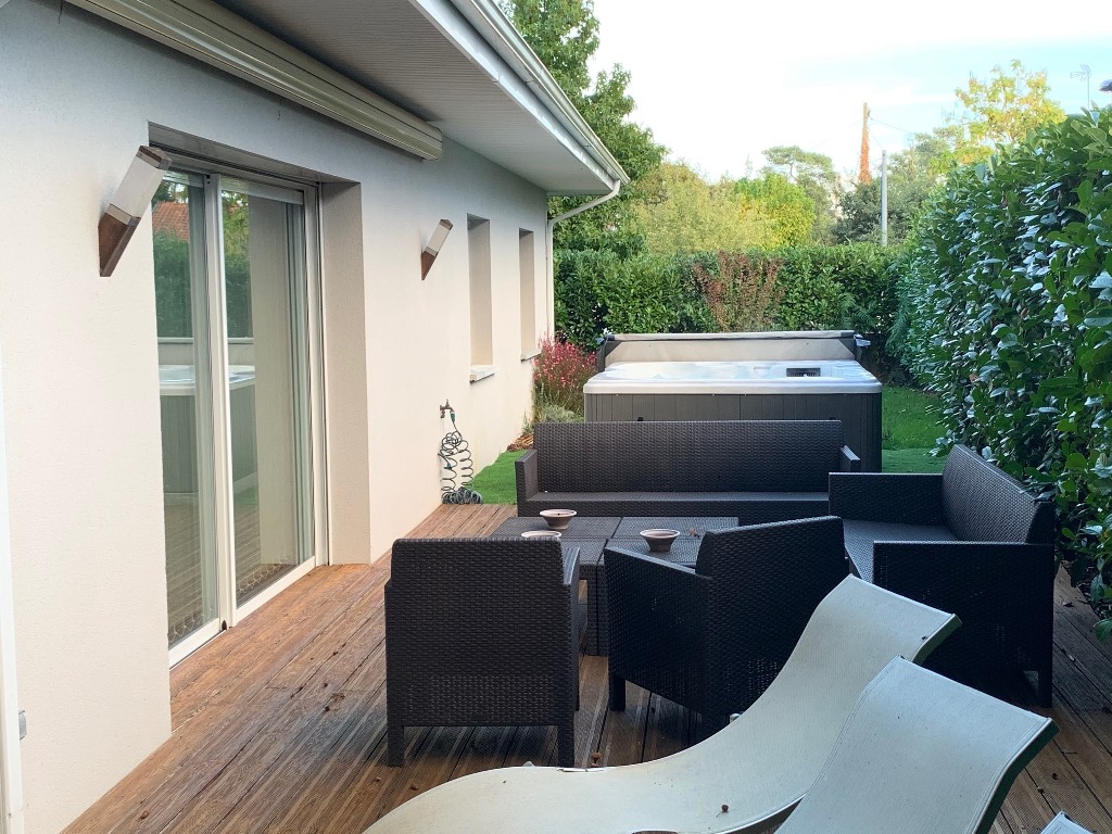 One kilometer from Lake Cazaux and 9 km from La Teste de Buch, stay in our new single-story house of 130 m², with outdoor SPA for 6 people including one reclining one, located in a quiet subdivision at the foot of the cycle path joining the lake and the ocean.