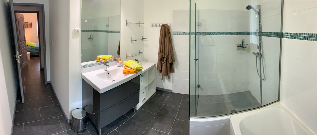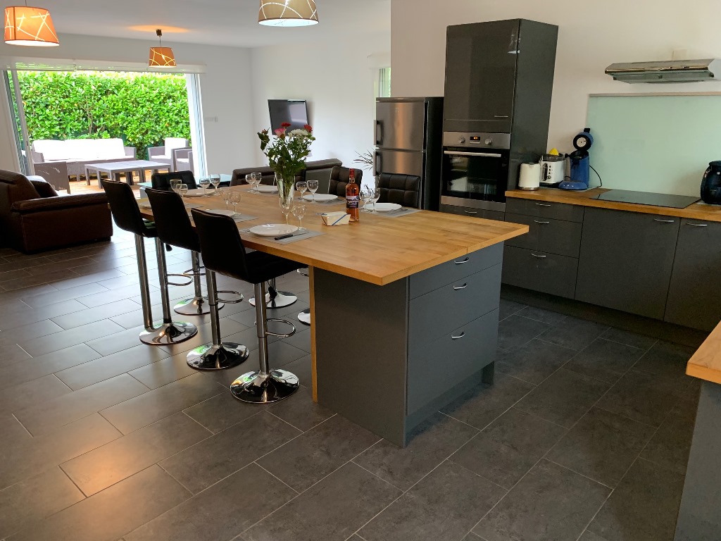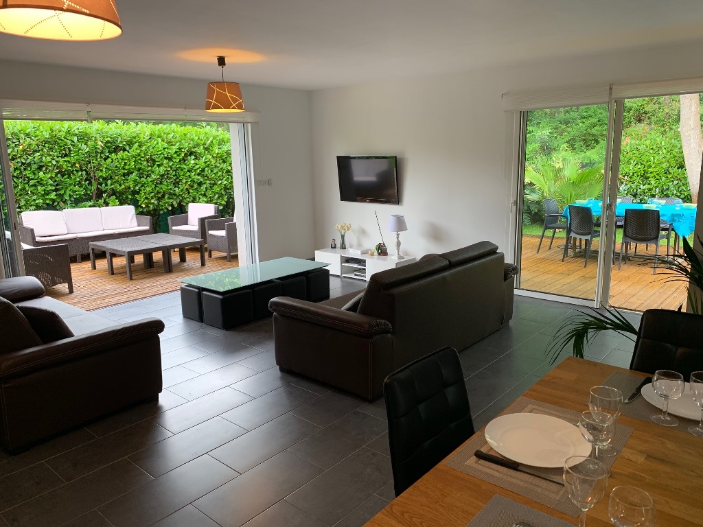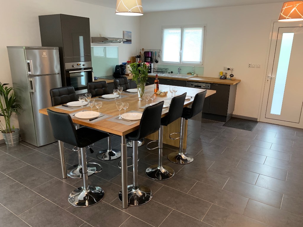 The house, composed of a fully equipped kitchen opening onto a large, very bright living room with a lounge, a TV corner with a large opening onto the terrace, will be ideal for meeting up with family or friends.