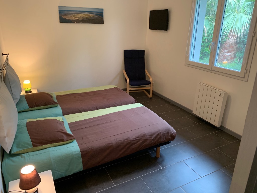 In the sleeping area of the house, you will find two bedrooms equipped with a double bed (140) and a large wardrobe and one bedroom equipped with two single beds. Sheets, table linen, bathroom linen and heating are included in the price.