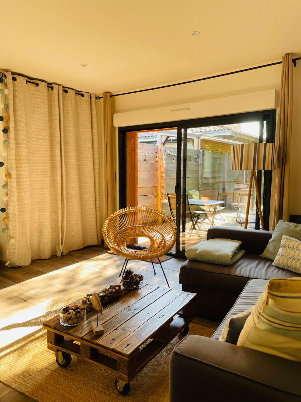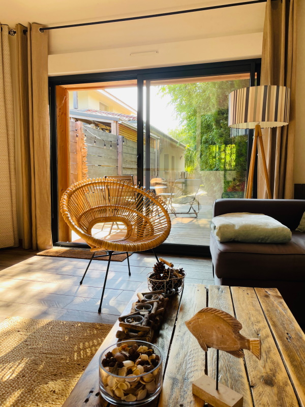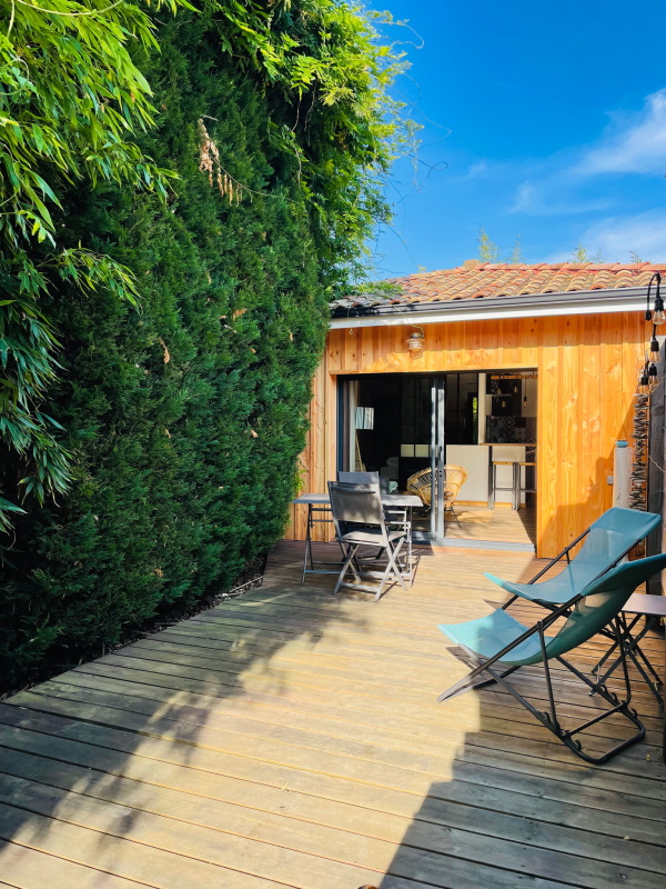 Nestled in a green setting and enjoying private access, this charming little house with careful decoration, bears the identity colors of the Bassin with notes of blue for these expanses of water as far as the eye can see, green for this beautiful and generous nature and wood for the cabin spirit dear to this territory. Designed to make you feel at home, the Laouga Cabin is ideal as a pied-à-terre to discover this land made of seas and live to the rhythm of this little corner of paradise, while cocooning as a couple. On the wooden terrace, take the time to treat yourself to a moment of relaxation, to taste local products or to grill your food on the plancha.