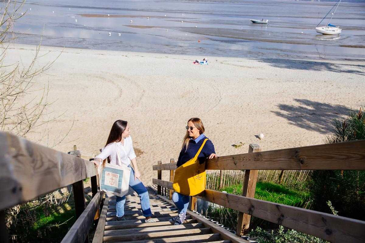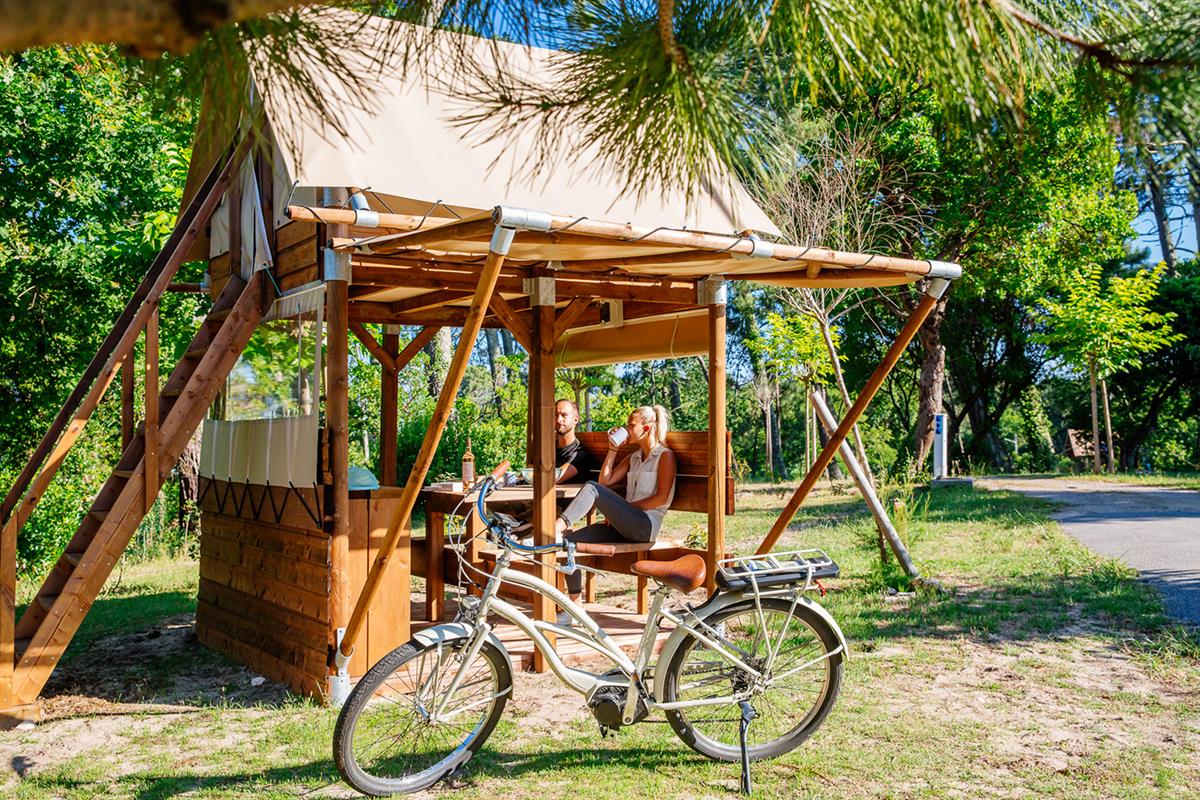 In the village of Claouey, the "Les Pastourelles" campsite is located on the beach. The market, the nautical club, and the cycle path for exploring the peninsula are all nearby. Some pitches are equipped with mobile homes and cabins, and offer a 180° view of the Bassin. Pitches or tents for rent are available under the pine trees. At the Cabane des Pastourelles, the reception staff serves up your best holiday experiences on a platter. At the Cabane café, you can meet for coffee and afternoon tea, with delicious products to sip and nibble on, favoring local and organic produce. The campsite has been awarded the "Vélodyssée," "Accueil Vélo," and "Ligue de Protection des Oiseaux" (Bird Protection League) labels.