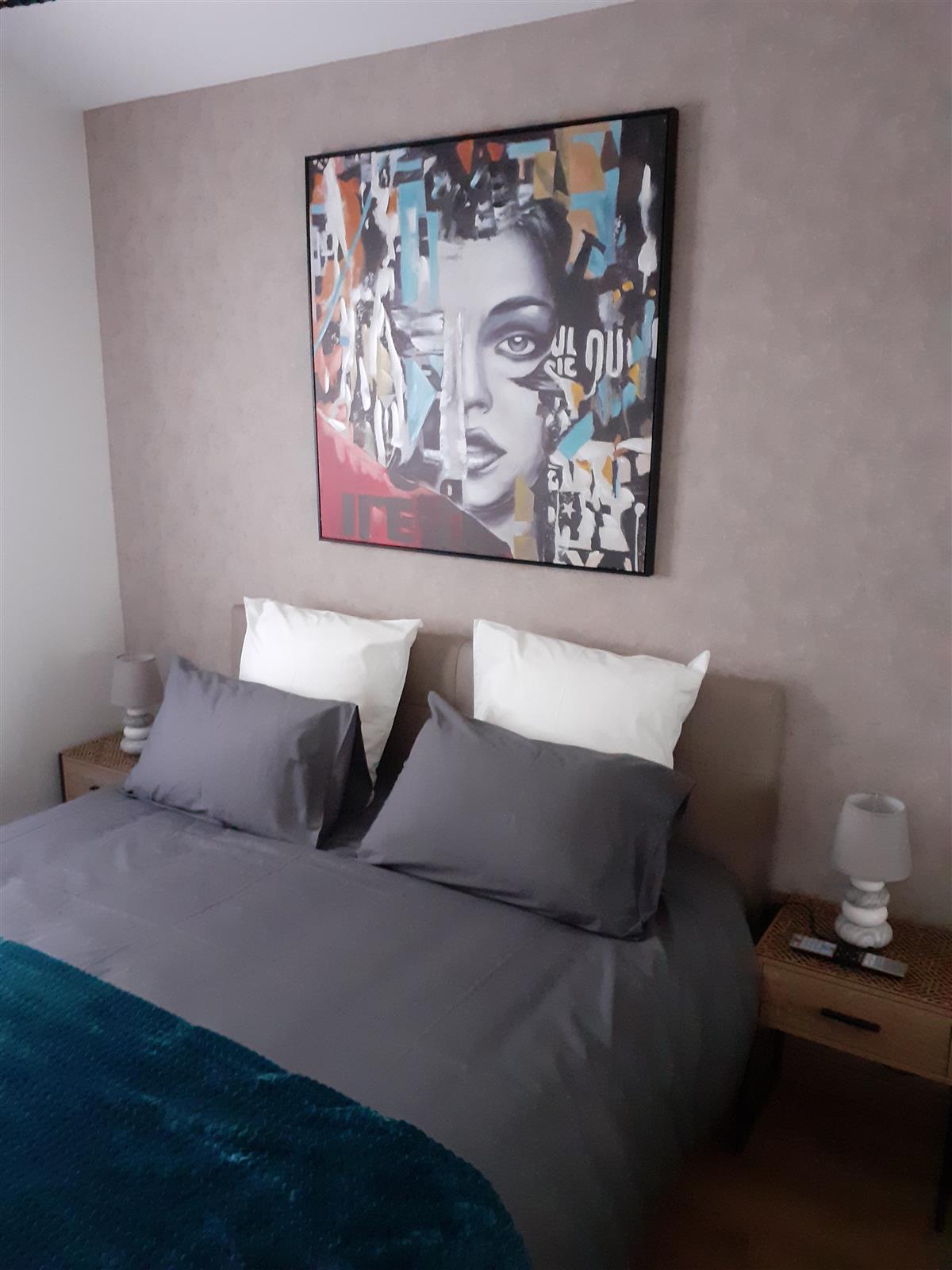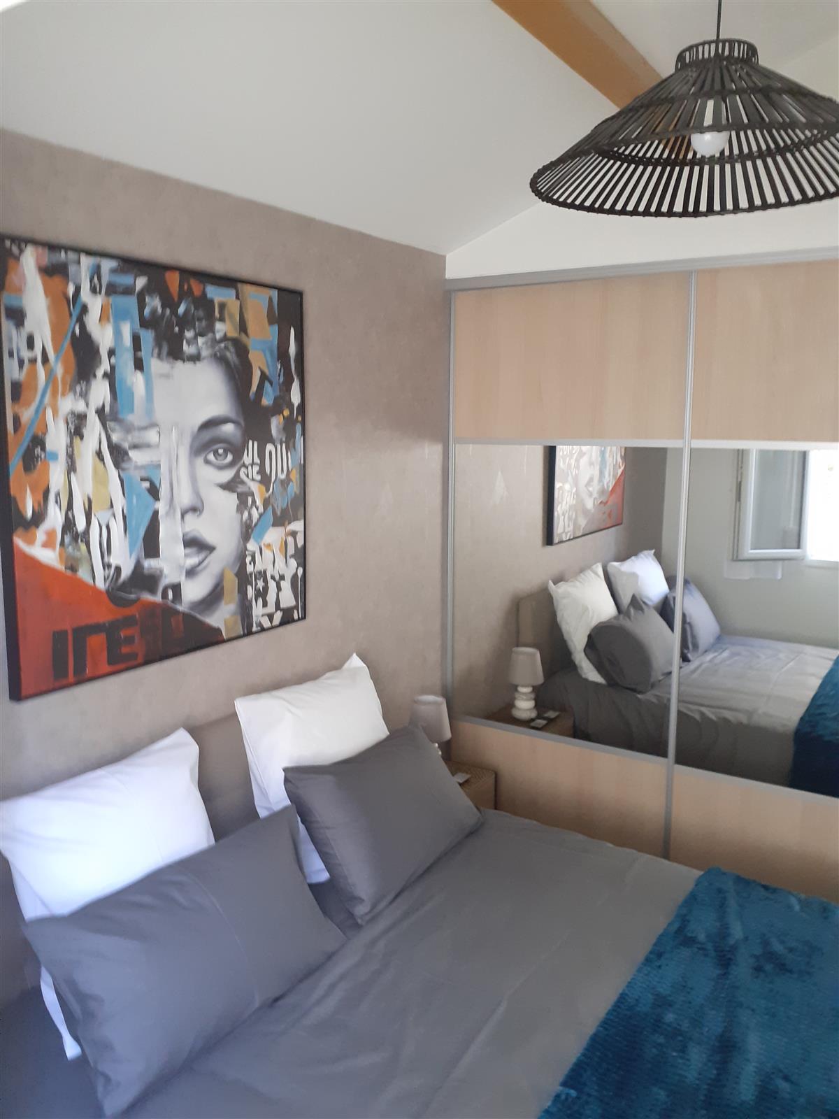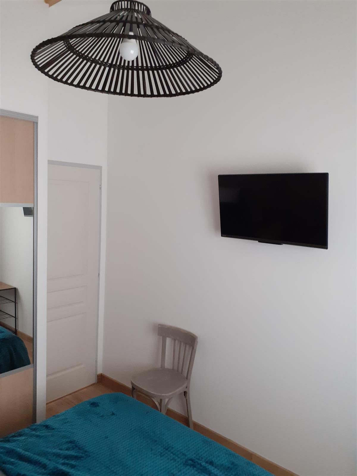 The bedroom is equipped with 160 cm bedding, TV, wardrobe, 2 bedside tables, 2 chairs and linen.