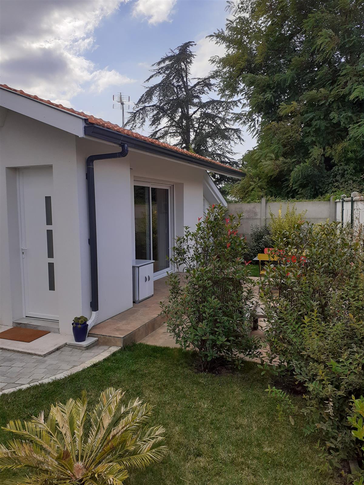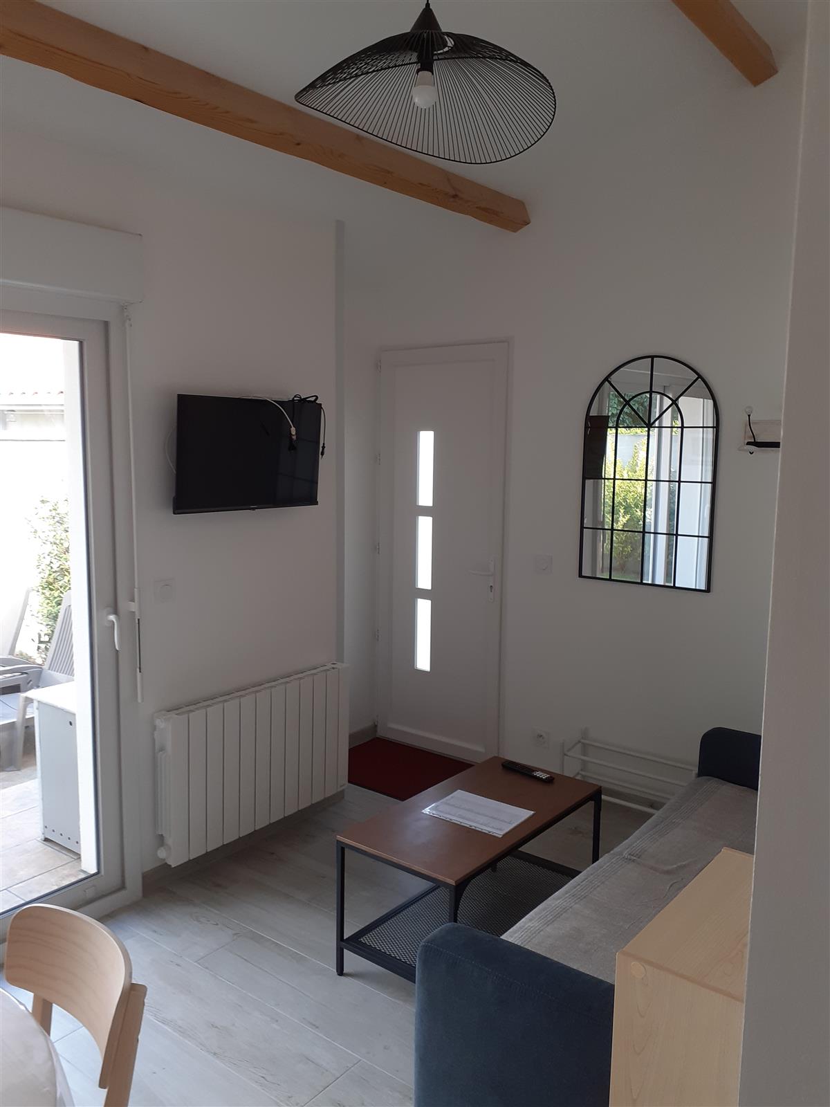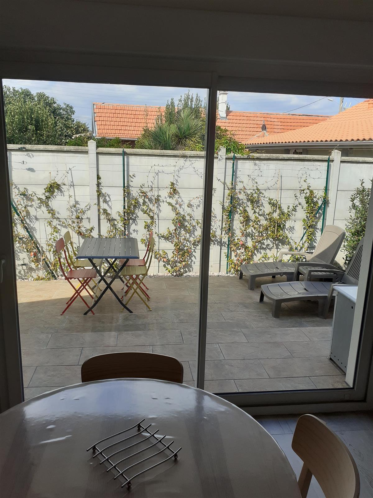 New T2 gîte for 2 people, in a quiet area close to the owner, comprising a ground floor opening onto a shaded tiled terrace and a small garden with trees. Free private parking on site or outside near the gîte.
