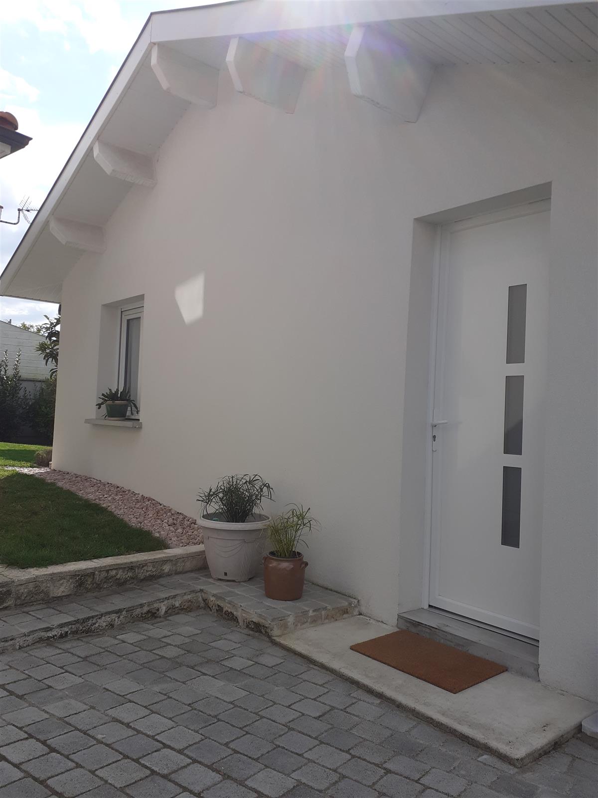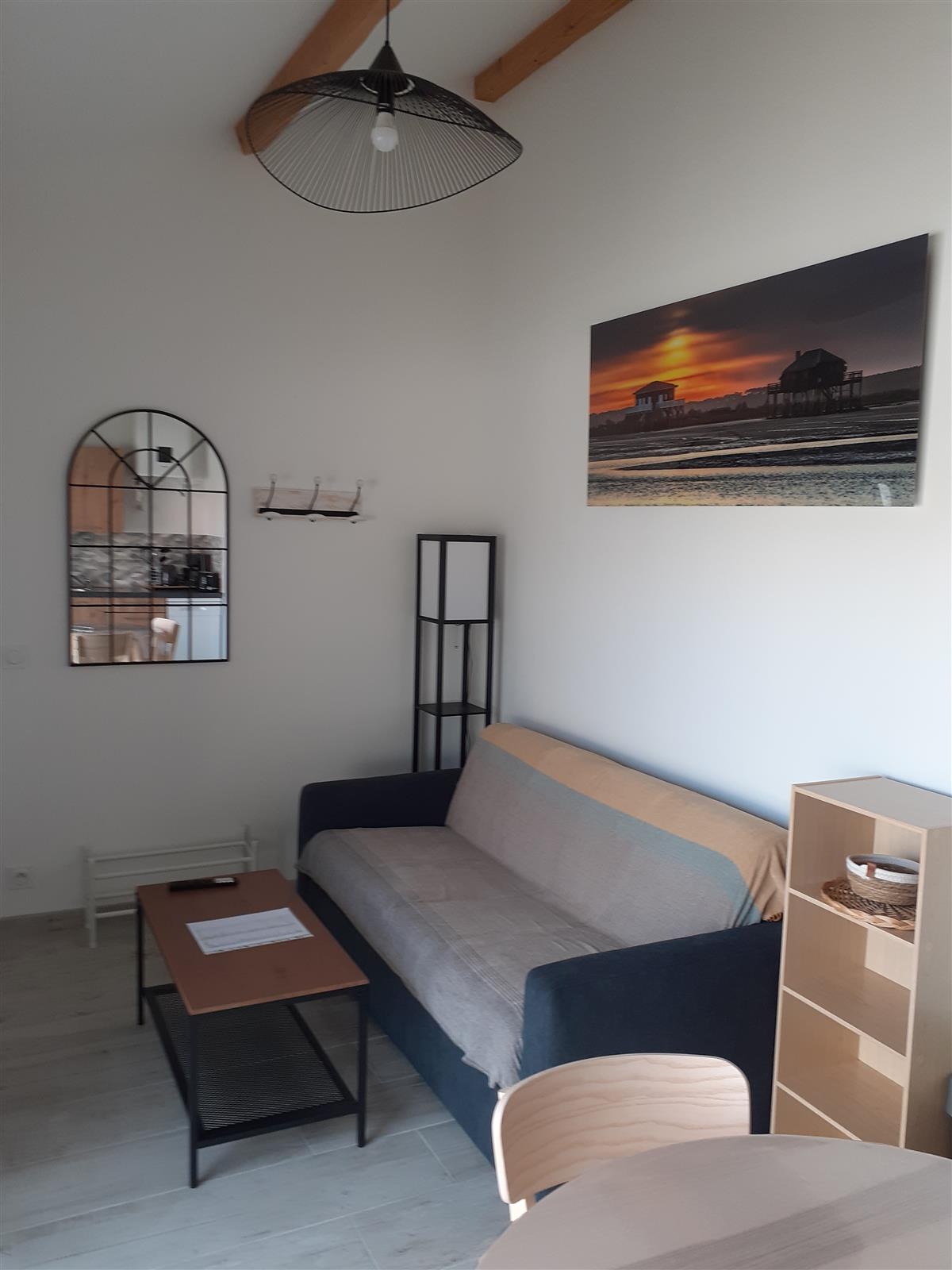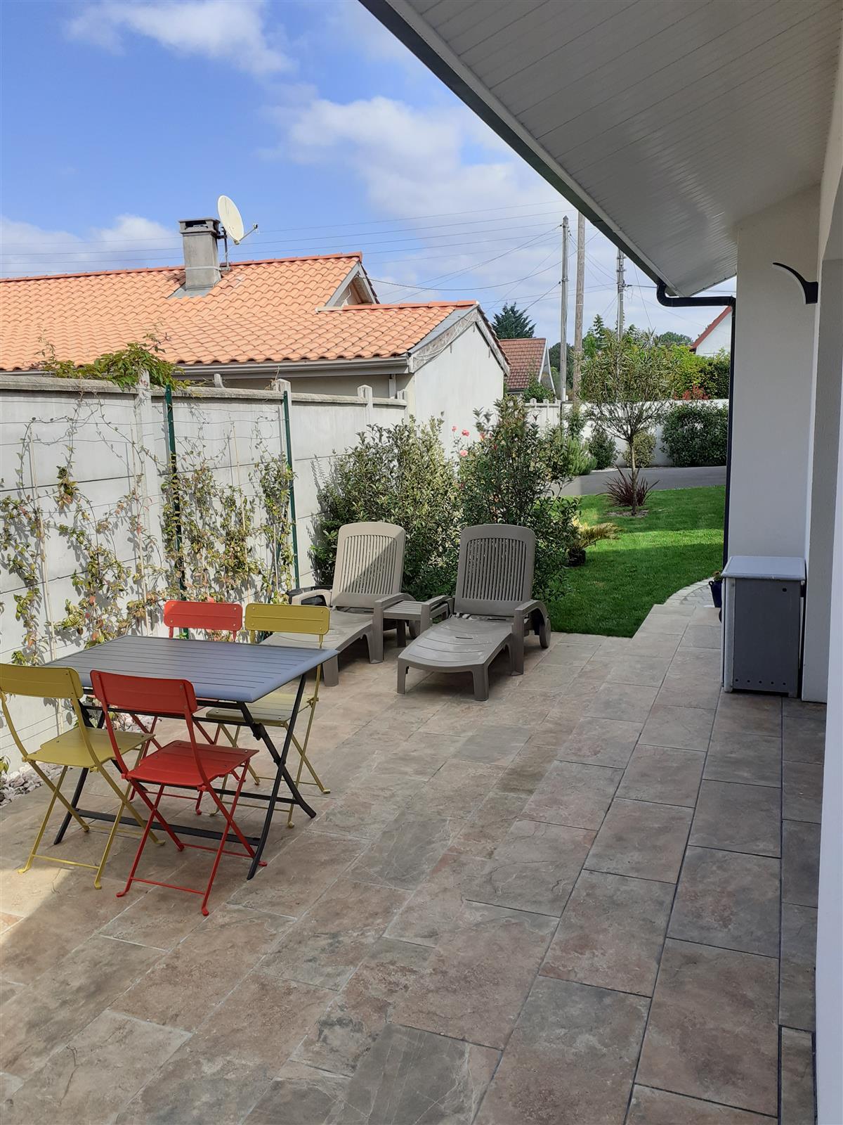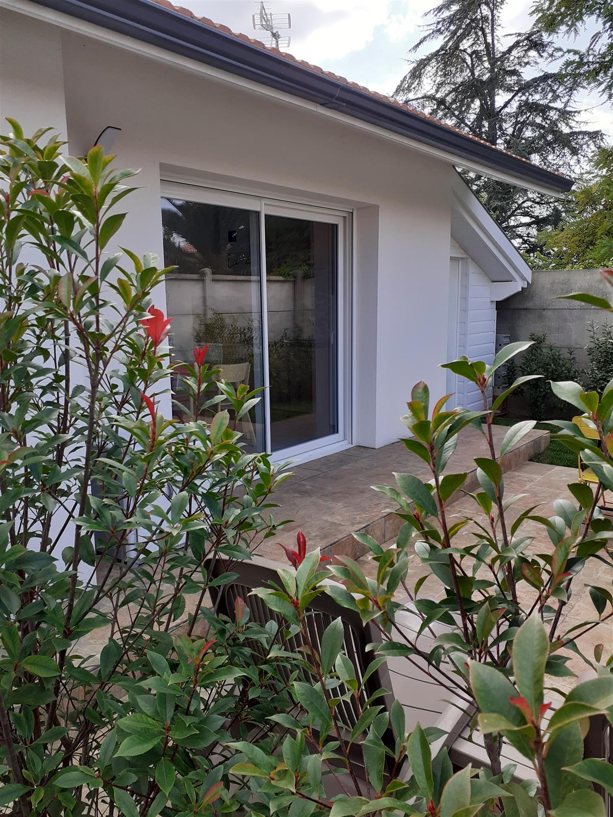 New T2 gîte for 2 people, in a quiet area close to the owner, comprising a ground floor opening onto a shaded tiled terrace and a small garden with trees. Free private parking on site or outside near the gîte.