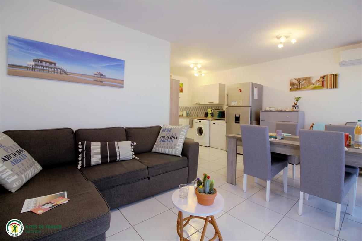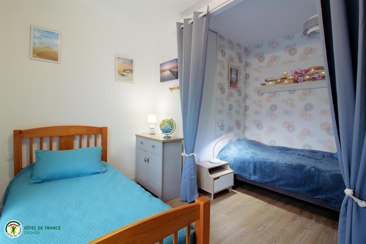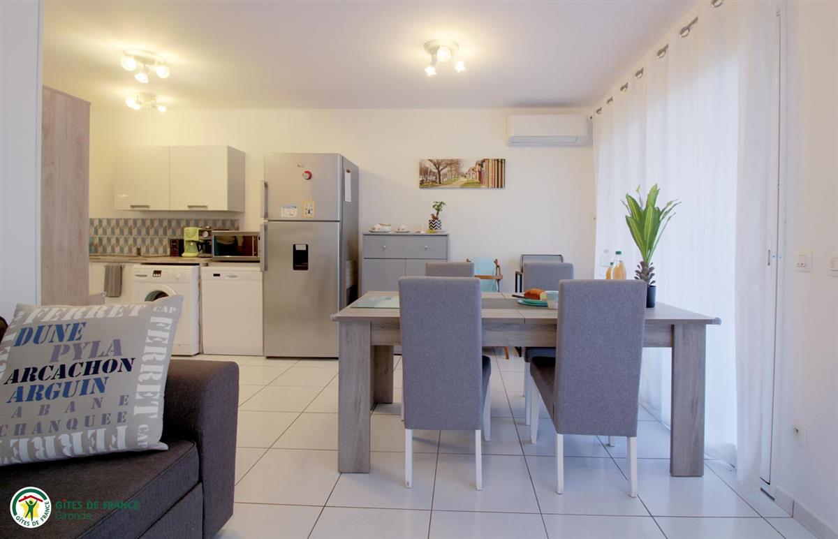 Located in the heart of the Bassin of Arcachon, in the town of Teich, close to its town center and all amenities, Le Courlis welcomes you for your stay as a couple or family. Its location will allow you to discover the many riches of the region and practice different activities: bird sanctuary 2 km away, oyster huts, Dune du Pilat, ocean beaches 20 km away, etc. Le Courlis is a charming vacation home ideal for a couple with two children. Adjoining two other accommodations, it has a covered terrace with outdoor furniture and gas plancha and a private garden. The house consists of an air-conditioned living room with equipped kitchen, dining area and lounge, two bedrooms, a bathroom (shower) and a separate toilet. Sheets, towels and tea towels are included. Parking in front of the house.