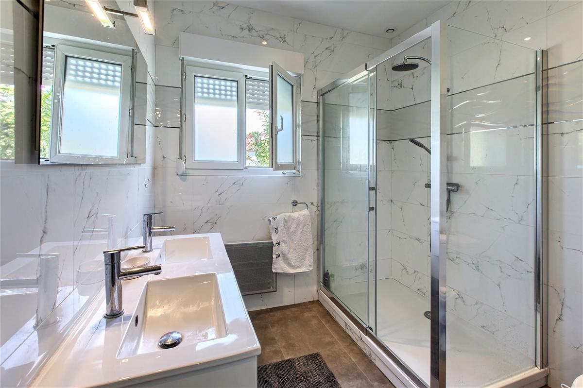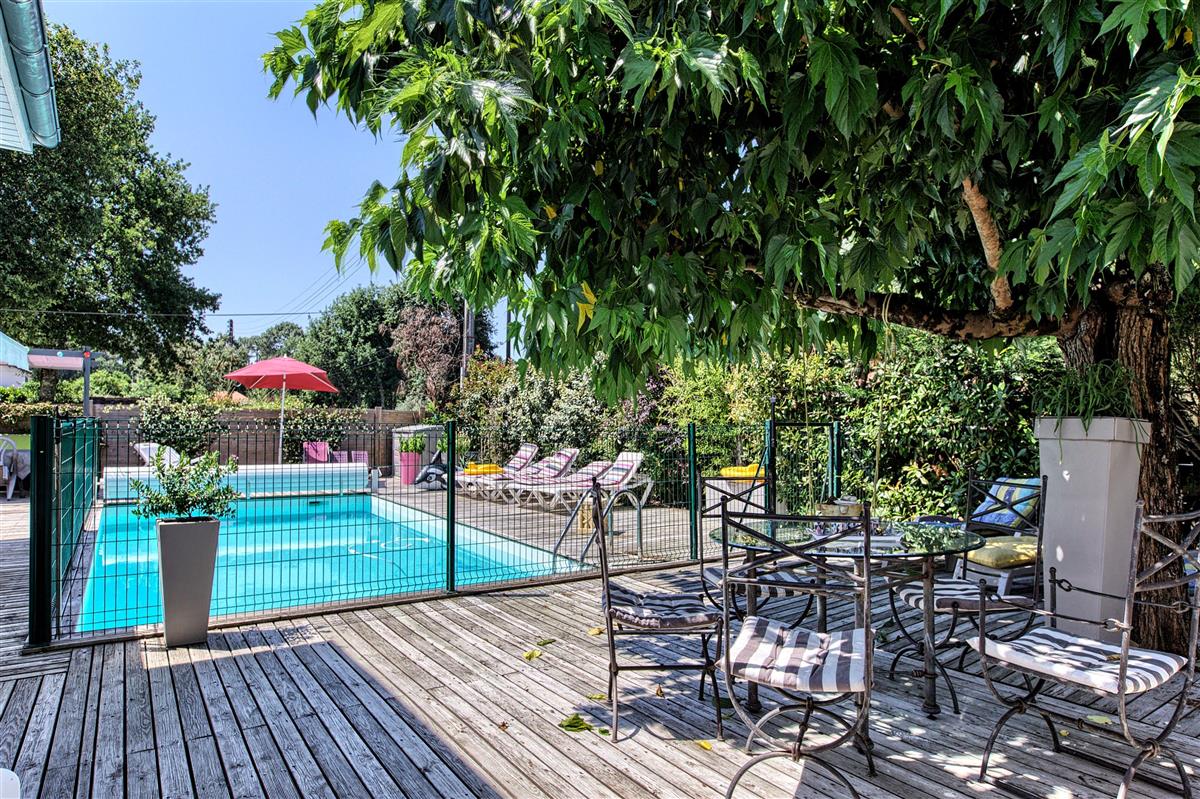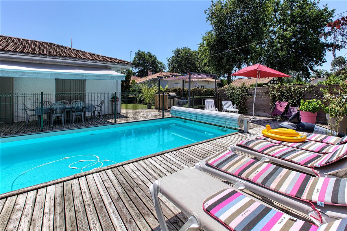 The villa is located in a quiet residential area, is nicely decorated and has a garden with trees and flowers, a swimming pool heated from May to September, a pétanque court, a large wooden terrace and a summer kitchen.