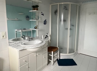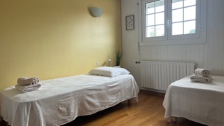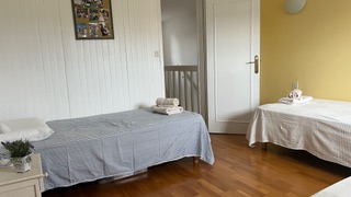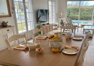 Situated in a quiet, residential area of La Teste de Buch, our guest rooms welcome you to an air-conditioned house, ideal for a relaxing stay between the lake, the forest and the ocean. The two bedrooms, Myosotis (double bed) and Mimosas (3 single beds), are on the first floor of the house and share a shower room with toilet. Every morning, enjoy a gourmet breakfast: hot drink, fruit juice, fresh fruit, bread, butter and jam, served in the dining room or on the terrace depending on the weather.