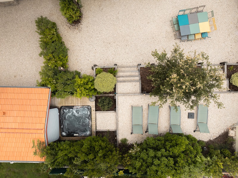 Enjoy the bowling green at the front of the house, and the plancha, garden furniture, spa and sun loungers at the rear in a garden planted with trees.