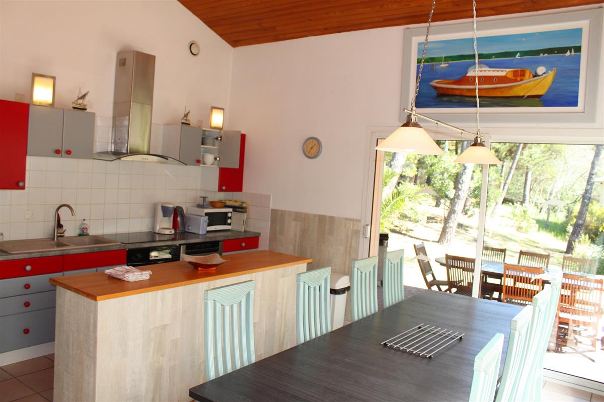 This 130 m² single-storey house is located in Cap Ferret, 200 m from the ocean beaches, 500 m from the lake and 2 km from the town centre. With its 4 bedrooms, this accommodation can sleep up to 9 people. A large terrace, a pretty garden planted with trees, and during the summer, you can play outside. During the cooler seasons, the fireplace and jacuzzi make it easy to spend some quality time inside the house. Weekly, fortnightly and monthly rentals