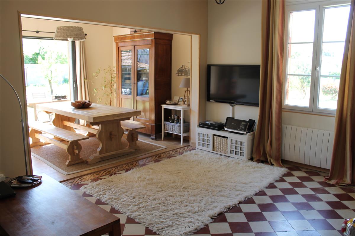 135 m² Arcachon-style house, renovated with a wooden extension. The living room has a bay window overlooking a large 1500 m² plot of land, with a salt-water swimming pool, 8m by 4m, equipped with a staircase. Four bedrooms and two bathrooms allow this typical regional house to comfortably accommodate up to 8 people.