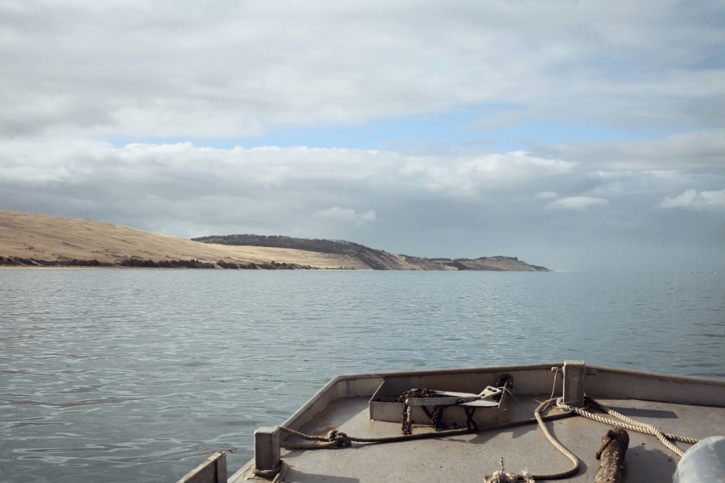 À portée de vue, alors que notre embarcation se rapproche de l’ile, paisible et défendu, un grand cormoran déploie ses ailes en étendard tandis qu’un couple d’huitriers pie, inséparables jusqu’à la fin de leur vie, balayent le sable de leurs longs becs en quête d’insectes et de petits crustacés.
