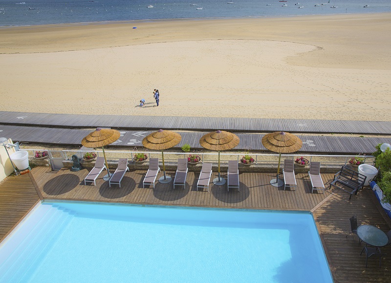 Une situation exceptionnelle sur le Bassin d’Arcachon pour vos déplacements loisirs ou professionnels. Fondé depuis 1973, l’Arc Hôtel sur Mer est un établissement familial alliant une décoration classique et intemporelle. Avec accès direct sur la plage et à proximité immédiate du Centre-ville (600 m), Casino et Palais des Congrès par le front de mer, l’établissement vous propose son Espace détente sur réservation (Piscine extérieure, salle Fitness, Jacuzzi, Hammam, Sauna). Les chambres spacieuses, lumineuses (24 m2) et climatisées disposent d’une terrasse privative avec une vue panoramique sur la mer ou la ville. Le petit déjeuner est servi sous forme de Buffet dans nos salons face à la plage. Pour vos activités professionnelles nous proposons une salle de réunion rénovée pouvant accueillir jusqu’à 15 personnes. Parking privé et clos à disposition et gratuit.