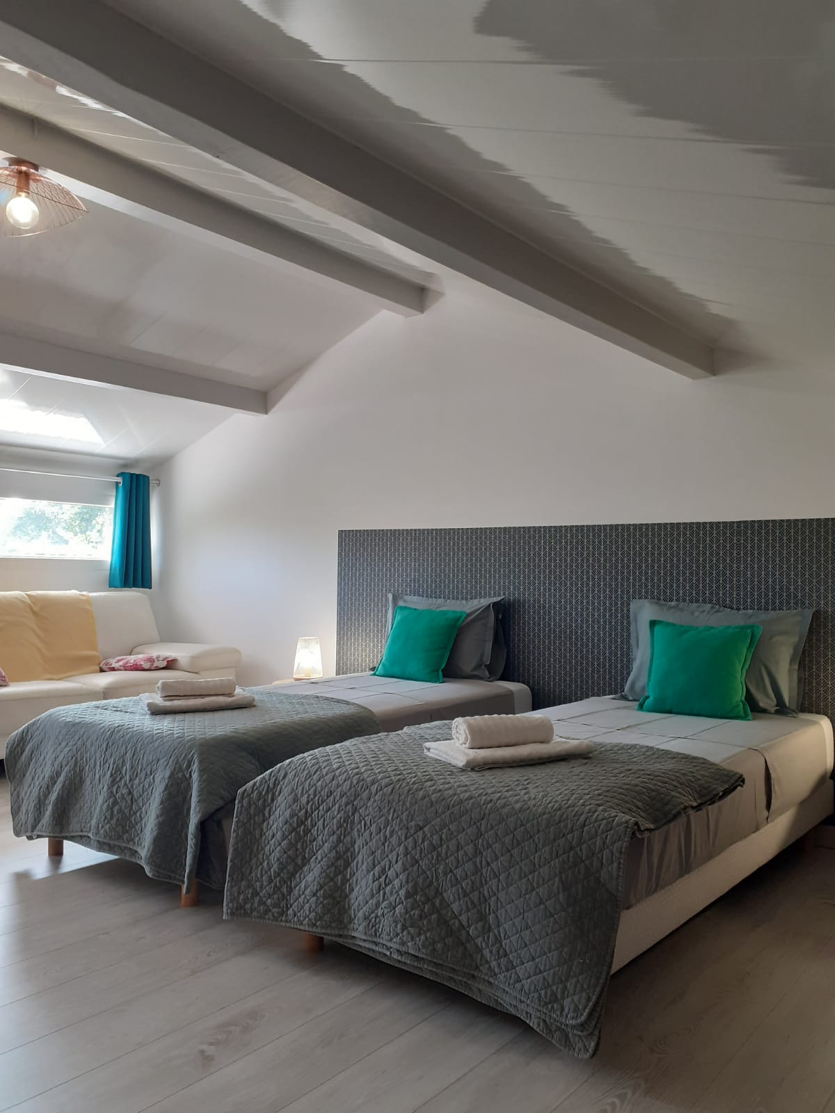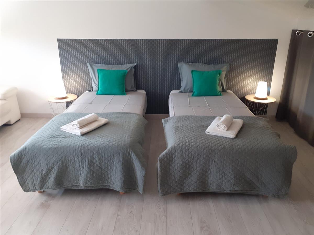 1 chambre à l’ étage couchage ( 90 x 2 ) draps compris