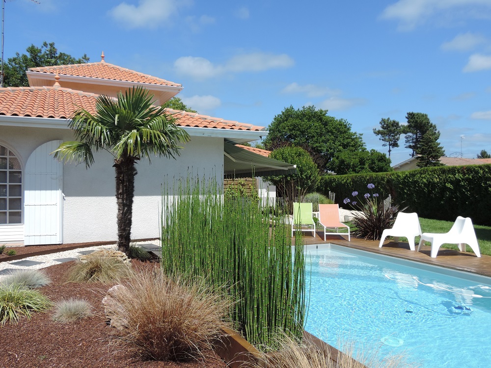 Vous êtes à Andernos, sur le Bassin d’Arcachon, idéalement situé entre Arcachon et le Cap Ferret. La villa Surcouf vous accueille au calme d’un quartier résidentiel boisé, à 2 pas des commerces, 5 minutes de la plage, avec accès aux pistes cyclables à 100 mètres de la maison. La Villa Surcouf vous propose 4 chambres d’hôtes de plain-pied avec accès privatif sur un terrain paysagé avec jardin, terrasses bois et piscine. Les chambres sont équipées de lits de grande dimension et disposent chacune d’une salle d’eau ou de bains avec wc privatifs, d’une télévision, de la climatisation, d’un réfrigérateur et d’une terrasse. Les chambres Grand Piquey et Cap Ferret peuvent être louées ensemble et seront idéales pour des vacances en famille ou entre amis. Accès WIFI gratuit. Location sur place de VTC. La piscine chauffée est à votre disposition de début mai à fin septembre.