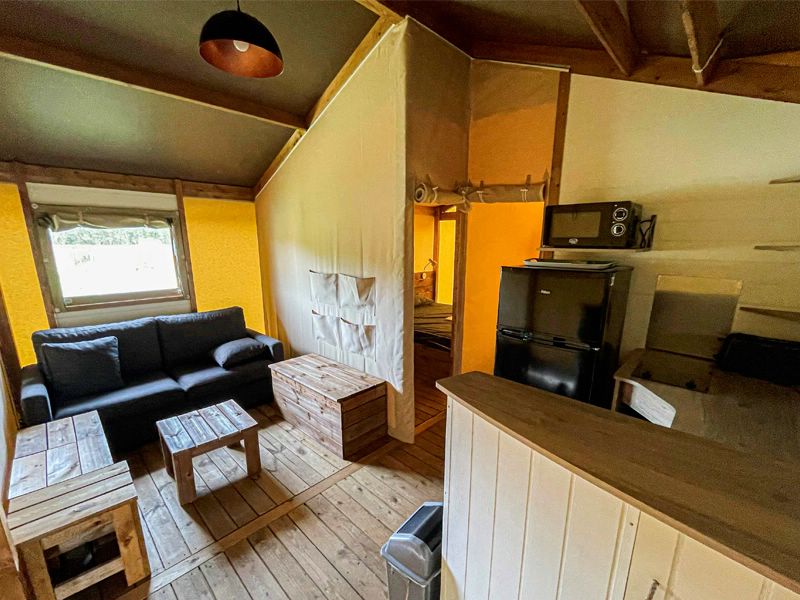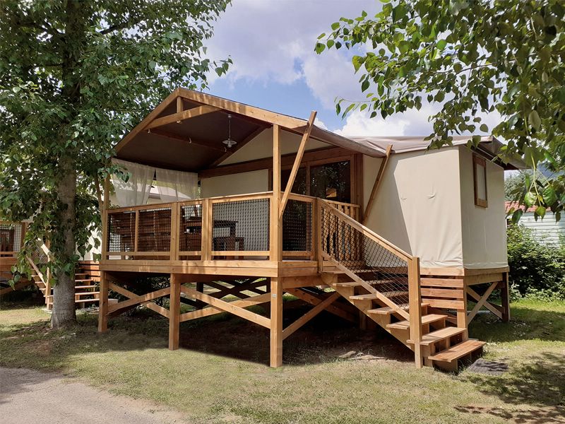 Al campeggio Green Village, situato a 800 metri dalla tenuta La Forge, goditi la pace e la tranquillità e immergiti nel cuore della natura con i nostri chalet in tela e cottage Privilège.