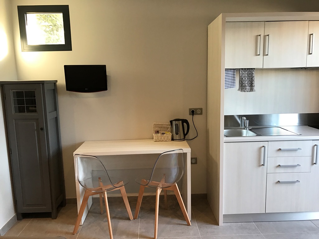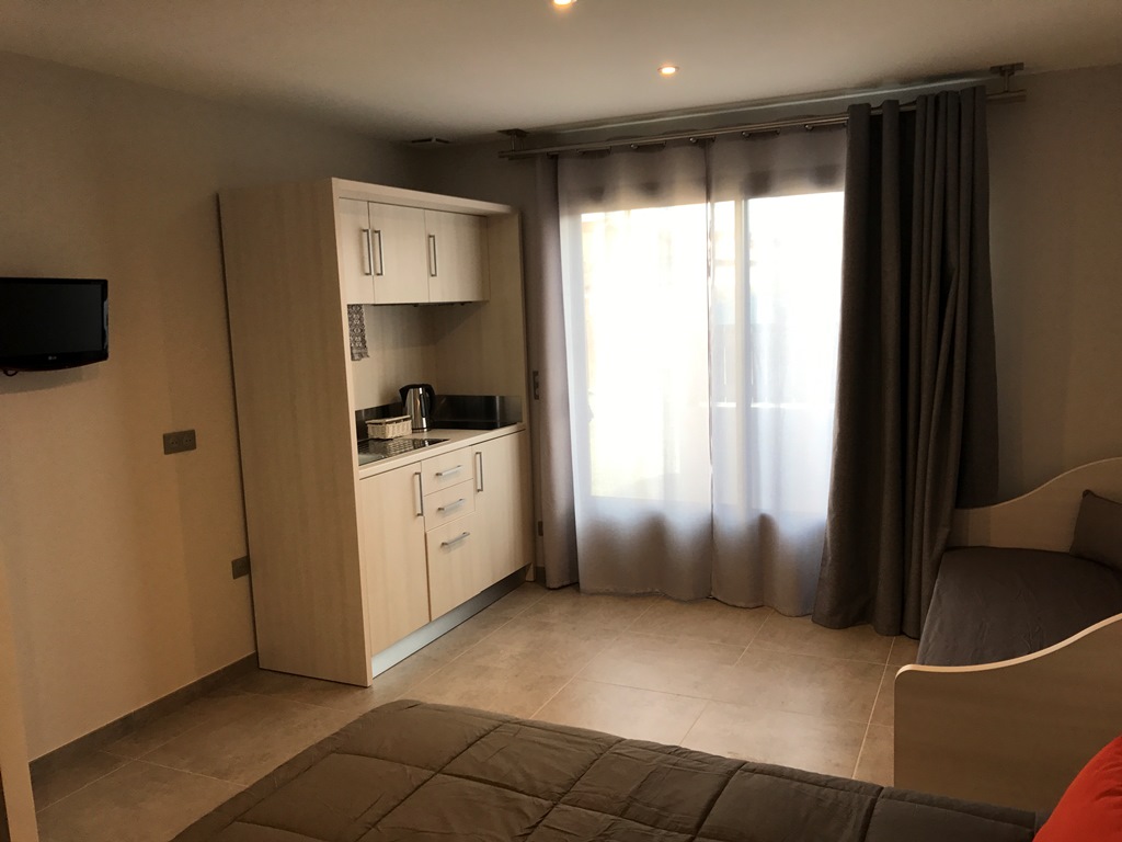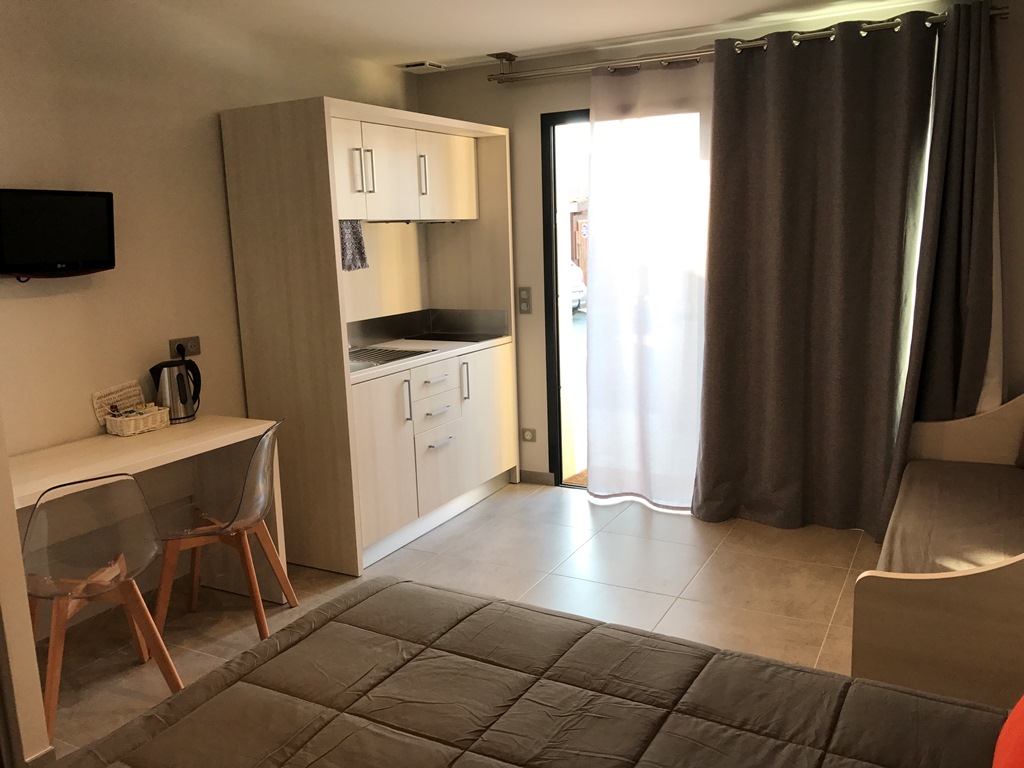 Offriamo 3 monolocali completamente ristrutturati, ognuno dei quali può ospitare da 2 a 4 persone (circa 25 m²). Ogni monolocale dispone di un angolo cottura completamente attrezzato, un televisore, un letto matrimoniale modulare (160 cm, composto da due letti da 80 cm) e un divano letto. Il bagno è dotato di una spaziosa cabina doccia (160 x 90), scaldasalviette e WC separato. Una piccola terrazza privata completa ogni appartamento.