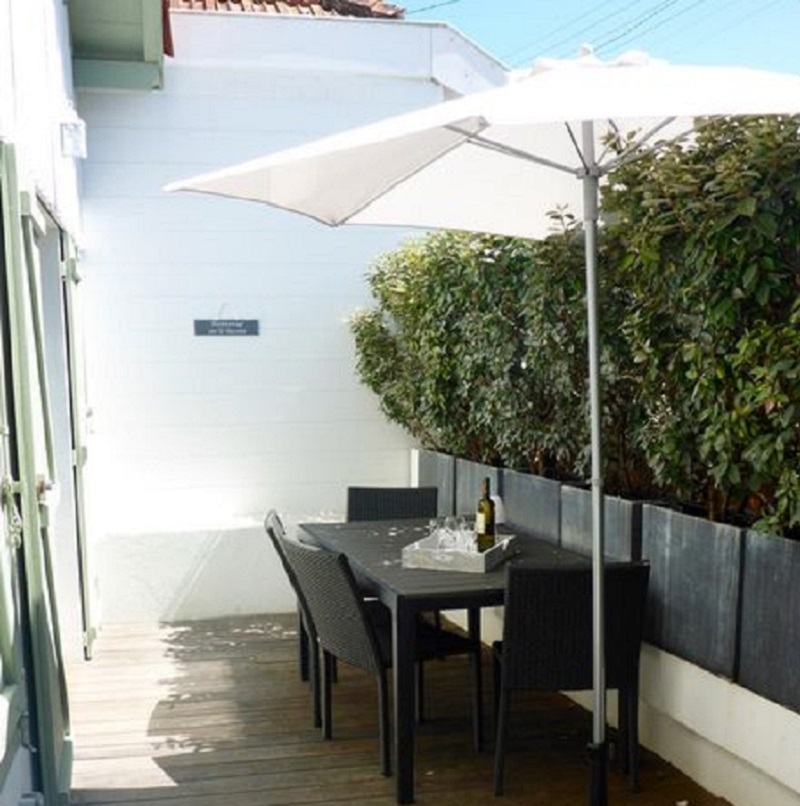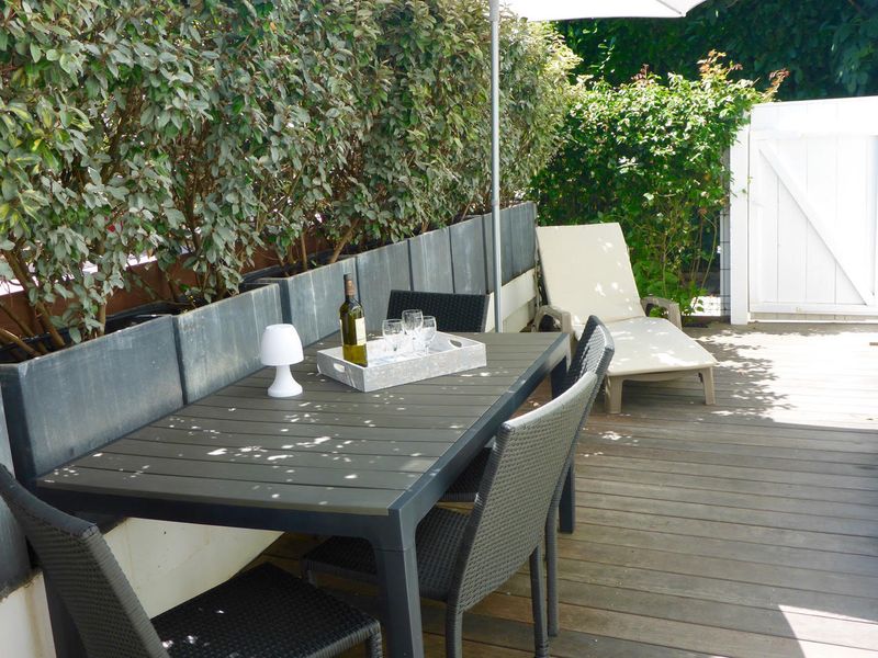 I suoi punti di forza: una terrazza in legno di 15 m² per pranzare o cenare in due, al riparo dalla vista.