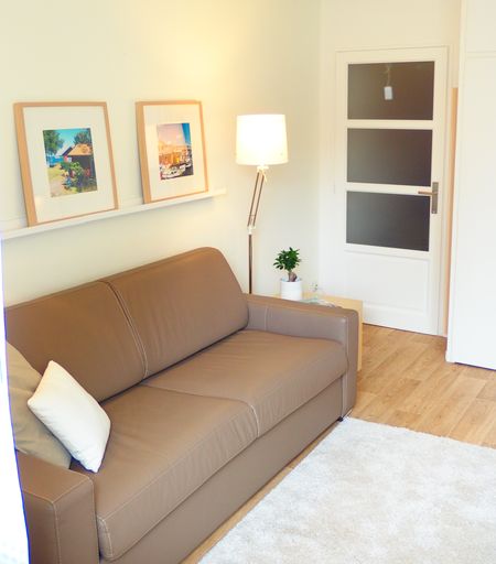 Эти апартаменты обставлены в очень удобном скандинавском стиле. Они расположены на первом этаже тихого и безопасного дома (домофон). Очень светлые, состоят из двух комнат, включая отдельную кабину. Ванная комната и туалет доступны из гостиной. В апартаментах есть Wi-Fi доступ в Интернет.