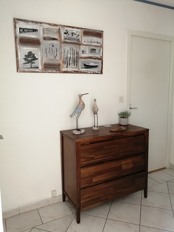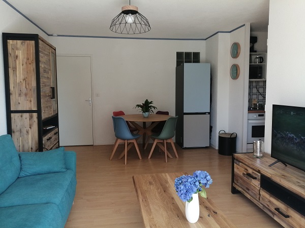 Апартаменты находятся всего в двух минутах ходьбы от пляжа, в непосредственной близости от магазинов и услуг. Жилая площадь включает в себя уютную гостиную с удобным диваном, телевизором и Wi-Fi, а также крытую террасу площадью 8 м², идеально подходящую для обедов на свежем воздухе.